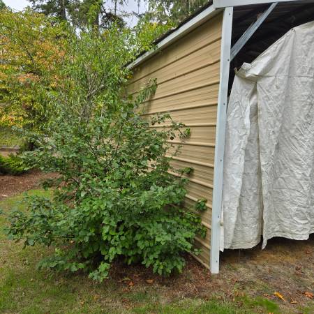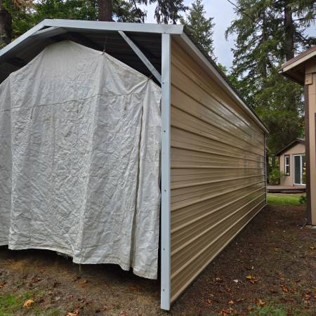 12' x 30 ft 9ft side walls three sides covered with man door at one end $3000 you take it down needs down in a few weeks building is in Lyons five 03 798-391four