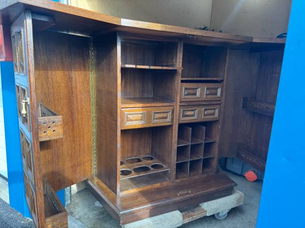 📍 Pickup in Salem, OR (Local only – this is HEAVY! bring help for loading) Currently in my storage so meetup will be there. Unfortunately, I wasn’t able to fully extend and take pictures of this cabinet because of the size of my storage unit. This is a beautiful cabinet! The pics don’t do it justice, must see to appreciate. I can’t, won’t even try to, bring it up to my 2nd floor apartment or else I would have it in my living room. Rather than sitting in storage, I’d rather someone get to enjoy this gorgeous piece from the past.