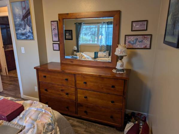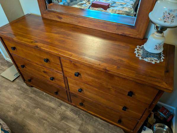 Measures 66 x 20 x 74 tall with mirror Only available from 9am to 5pm each day. No delivery and no help loading. pottery barn 6 drawers