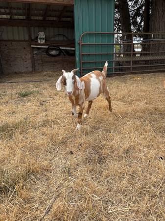 I have Nubian cross Doeling for sale. Born the first two weeks of April. She comes from a purebred Nubian buck and the dam is a mix of BoerX. She come from a good mom who makes plenty of milk and has no kidding problems. Would be great to add to your duel purpose homestead goat lines or for pet. She friendly and ready to go.