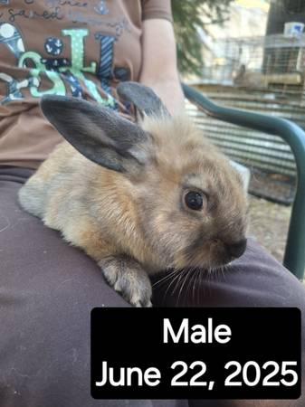 I have 5 mixed small-breed bunnies from a couple of different litters. Who are looking for their forever homes. Their gender and date of birth are on their pictures. The rehoming fee is $10 each....