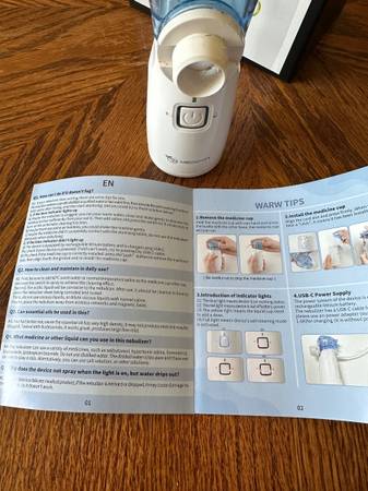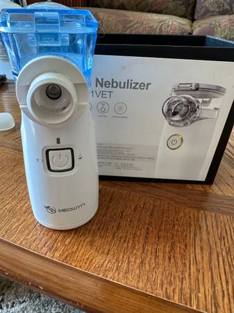 Handheld Nebulizer to turn liquid medicine to mist for lungs. Meowyn Mesh Nebulizer. Has USB-C cable for charging. Use your own power adapter; even new it didn’t come with one. Used very little for...