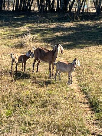 This trio of Nubians are ready to go. Kids are three months, boy is banded. Mom needs some training but can be milked.