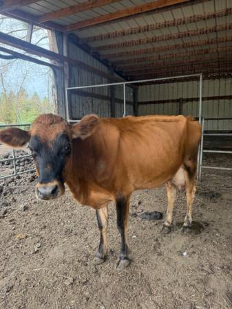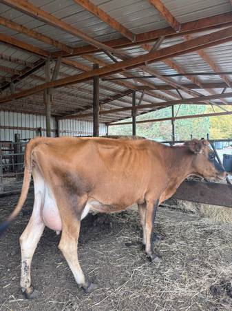 Currently in full milk production, delivering that rich, creamy Jersey milk. She is also expecting from an Angus bull.