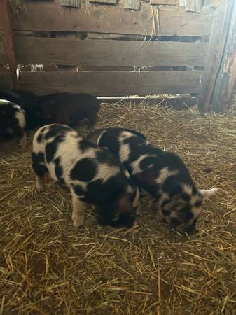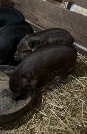 4 intact male kune kune piglets available. 9 weeks old and weaned. Ready to send to new farms One speckled Two brownish with stripes One all black 50 each Dallas pickup