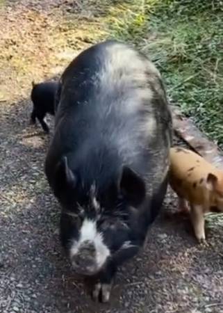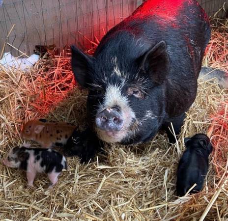 AGHx female pig. She’s a big lady with a good temperament. Has farrowed x2 with no issues, is a great mama. Must pick up and load on your own. She is much too big to fit in a dog crate.