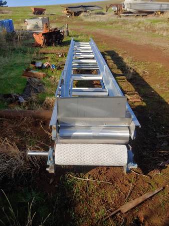 40' stainless steel conveyor, 24" wide. includes conveyor belt and 3ph stainless gear head motor Used 1 season for fruit. This is in 2 sections that could be made into 2, 20' conveyors with additional motors and rollers which I have at an additional charge.