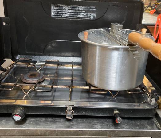 BLACK COLEMAN PROPANE STOVE POPCORN AND KETTLE NOT INCLUDED NO PROPANE BOTTLE