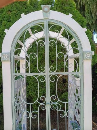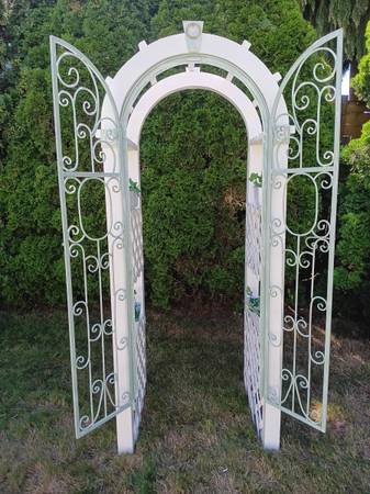 Seven foot 4 inch tall, 37 inch wide arbor with metal double door that open and closes/latches. Four planters are built into the sides. The arbor is all cedar for long life. At pick up it will have braces to keep it square for safe transport. The interior measurement is 30 inches.