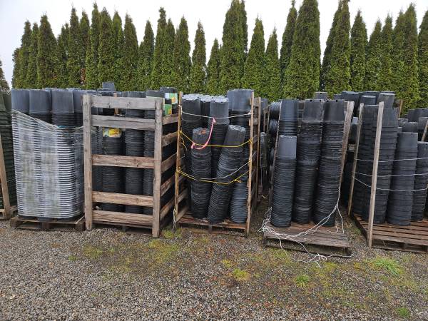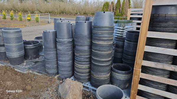 Nursery, Pots, Plants, Trees, Greenhouse, Forest, Flowers, Growing, Starts, Gallon, Plastic, Potting, Containers, Stock, Garden, Transplant. Nursery Pots, Molded, Heavy Duty Nursery Pots, Shrubs, Trees, Seedlings, Propagate, Starts, Pot in Pot. ( No Deliveries or Trades ). No Minimums Buy what you want. # or Gallons Same. ( All Pricing and Availability are Subject to Change. Inventory moves very quickly. ) Call for our Address and Directions, A loader is available to assist in loading.