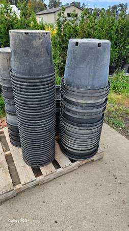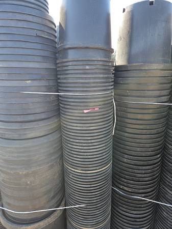 LIKE NEW NURSERY POTS, #1 pint,1Qt,1,2,3,5,5t,6,7,7t,10,10t,15,15t,20,20t,25,35,45 Gallon Sizes. Heavy Duty Injection Molded Style, not the thin-blown type. ( Call or Text for Current Availability and Directions. Sorry, no Deliveries.) I Select only the Best Heavy Duty, All the same Brand Mostly Pro Gro, so if you buy a lot or a little they all look alike.