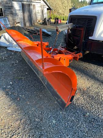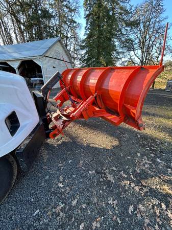 Good used 10 foot snow plow was mounted on a Freightliner FL70 5 yard dump truck. Four way control. Works perfectly. Comes with fender lights