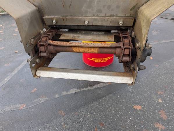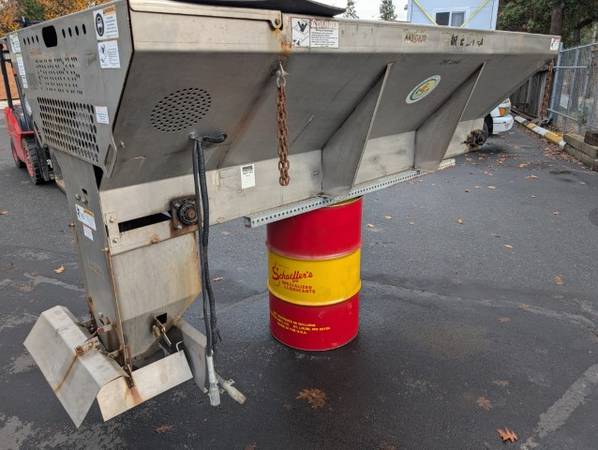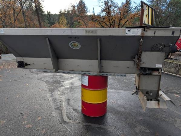 MONROE V BOX SPREADER SANDER,MODEL # MSPV-96-50-32, POWERED BY BRIGGS & STRATTON GASOLINE 10 HP SINGLE CYLINDER ENGINE. V BOX IS MADE OF STAINLESS STEEL,DIMENSIONS ARE 9'6" LONG, 51" WIDE....