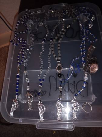 Unique rosary's glass beads lots of colors and sizes , kids sizes, bracelets if asked to make. Memorials for loved ones prices depends on the bead styles ranging from $30-$50