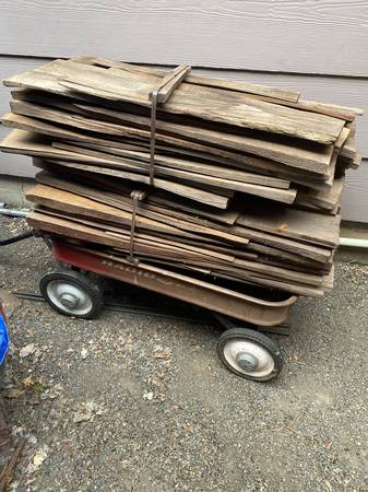 2 bundles for the $20. Home Depot 16" #1's $249 a bundle ! Weathered from being outside this year. Size: 24"-26" long x 5/8" - 3/4" thick butt. Various widths. Very dry now.