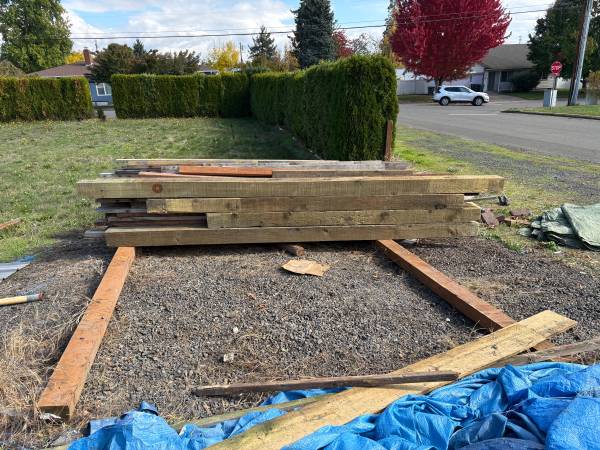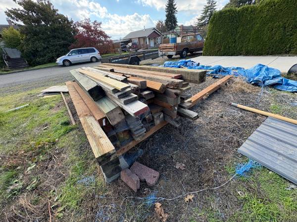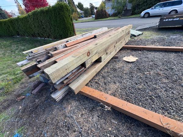 lumber from work port removal. 2x4, 2x6, 2x8, 4x4, 4x6, 6x6 some treated. Various lengths
