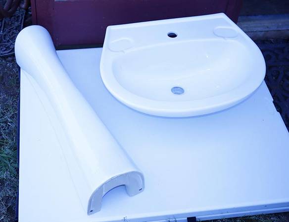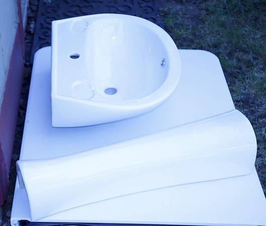 Ceramic Pedestal Sink New in Box. Leftover from project. Measurements are approximate Height: 33 inches Sink Dimensions: 21-5/8 Inches Wide x 16-7/8 Inches Deep Base Dimensions: 7-1/4 Inches wide