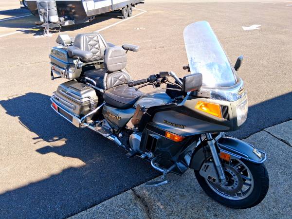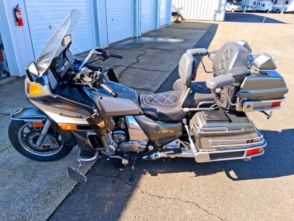 2003 KAWASAKI VOYAGER 1200 with Trailer. sold as Unit.Bike lived in Arizona---never in Rain up here. No weathering!! 2 month old battery---new tires---fires right up Clean Title---tags are current. Full Maint Binder. Trailer has spare and Lumina Diamond Trailer sells for 1799.00. Factory Liners for Trunk and side bags. Have too many bikes!!!! Endorsed Rider please with $$$$ 503 930 7081
