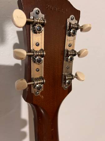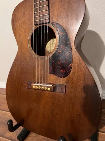 Almost 70 years old and still a gem. Has seven decades worth of wear and tear but still plays and sounds WONDERFUL. Professional patch on the back is smooth and virtually invisible from the inside. It was recently in the case for several weeks and came out in almost perfect tune. It's easy to play and sounds much bigger than its 0/00 size would lead you expect. Neck profile makes it easy to play. Nut width just under 1 3/4. Scale length about 24 5/8. It's very light. Rough hardshell case included. Cash only Local sale. Please reply via email or text.