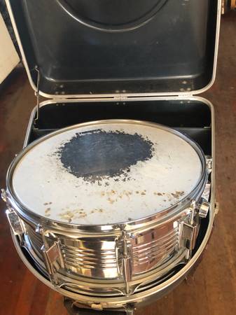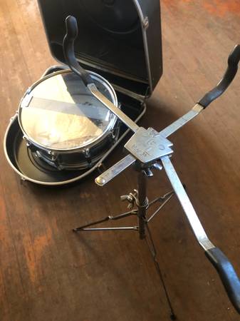 Just reduced from $125 in time for school band — cheaper than renting & will go fast. Snare drum, good condition. Case says “Ludwig” so snare should be. Comes with a couple of extra sticks to throw out to crowd once your concert is over! Comes with heavy duty, adjustable stand.