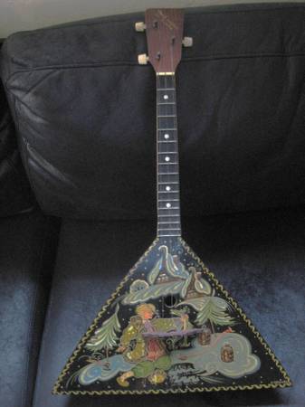 Antique 3-String Balalaika Russian Guitar Door pickup This is hand painted from Russia. It is in very good condition for it's age. Some surface wear but not bad at all. It's nearly 27 inches long....