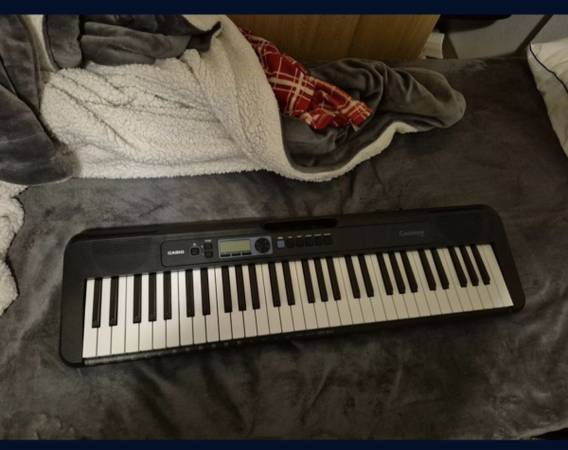 Casio keyboard piano with hundreds of customization and sound options. Includes power cord and sheet holder. Can be powered wirelessly with AA batteries. Goes for around $200 brand new, have had it for under a year and it works perfectly. Welcome to test it out upon meet.