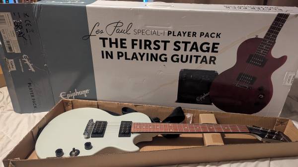 Never used Epiphone Les Paul special player pack with amp, bag, extra stings and all that you need too play. The color is unique its called Worn Grey