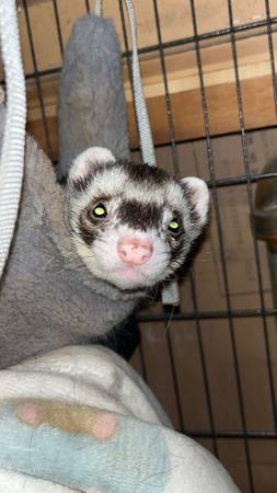 2 male ferrets almost 2 yrs. Please message for any questions like refining fee or videos, very playful and mischievous! Will provide indoor cage,outdoor cage,food and water dispenser 2 months worth of food, some toys. Never a dull moment. these little guys love to play.
