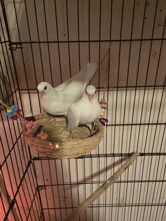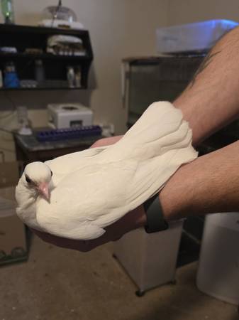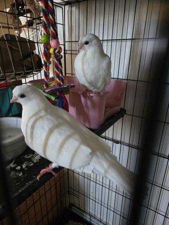 I have 2 juvenile white portugese tumbler pigeons. They have been raised by their parents in tandem with me. Handled since 1 week old. Perfect age to bond to someone. Not sure of gender yet as they are just a few months old. Message for more details.