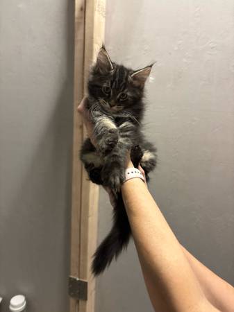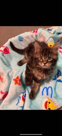 10 week old male kitten ready for his forever home. Has had his first set of shots and vet exam. There is a rehoming fee