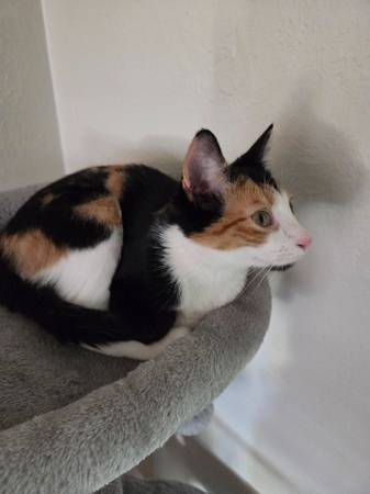 Caliko kitten needing home there is a redone fee that applies we are moving out of the state