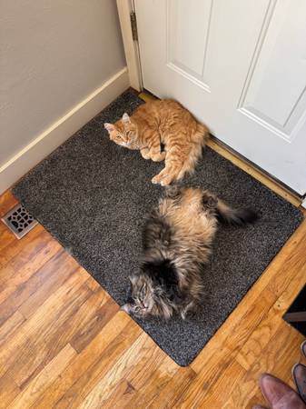 Hi, I have two beautiful cats that unfortunately need new homes. My boyfriend and I are moving to a different state and unfortunately can’t bring our kitties with us. The male cat is the orange one(Simon 1yr old) and the female cat is the tabby (Maggie 3yrs old), both are long hair with shots that are up-to-date and both are fixed. They really are such sweet cats, in a perfect world I would want them to go to the same home but of course I understand that’s not always achievable. Please let me know if you are interested or need any extra information. Thank you !