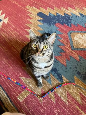 This is a sad post to make, but we have made the hard decision that we can no longer keep one of our cats, Purrrl. Living in a house with 3 other cats and a baby has been too stressful for her and us, and I am making this post to see if anyone knows of a home for her. She is around 3 years old, spayed and vaccinated, and enjoys playtime and cuddling. Her name is very fitting for her personality. Please message if you or anyone you know might be able to give her a good home.