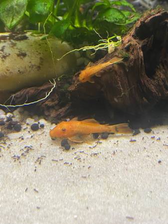 Super red bristlenose pleco fry. 1 1/2 inches. Hatched in May 2025. Can be in a community aquarium with other freshwater fish. $10 rehoming.
