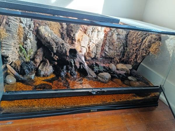 Waterfall terrarium/ paledarium water fall flow has different settings just needs lid 40 gal size holds a little bit of water heavy bring help $150 may contain some snails