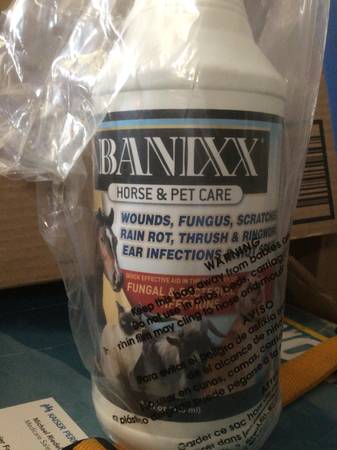 32 oz spray bottle. New in package. $30. Says suitable for all pets. For irritation due to wounds, scratches, rain rot, ringworm and more
