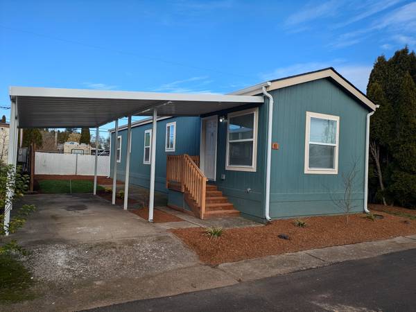 Outside, you have a deck awning and a brand new carport. The space also has low maintenance landscaping! Space rent: $740/month