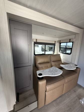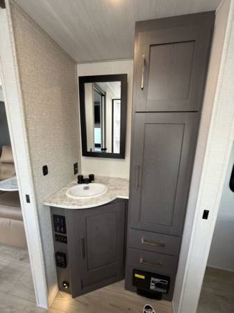 Our RV Suite lineup is a perfect blend of innovation, luxury, and environmental sustainability. Truly in a category of its own, the RV Suite combines the adventurous spirit of camping with the convenience and sophistication of modern living. With all-electric functionality, innovative interior designs, and a cozy rear patio, the RV Suite redefines the “destination” camping experience!