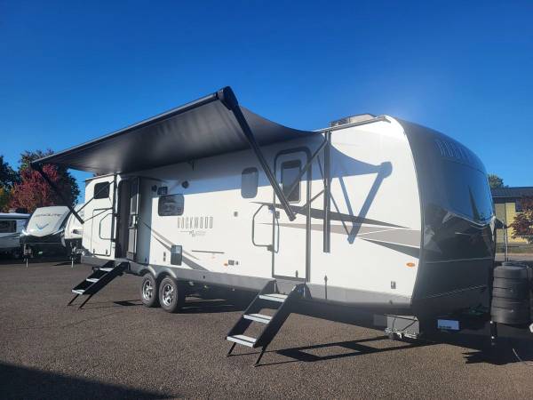 - Two slides on the rv with toppers above both. This will help keep the water and elements off and keep the RV in better condition