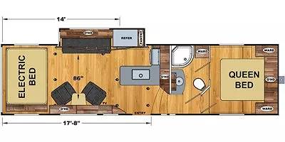 Sleeps: Up to 8 (queen bed, power bunk beds, convertible sofas)