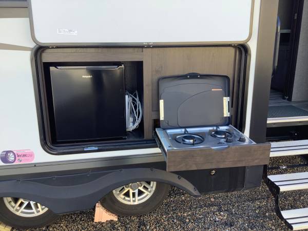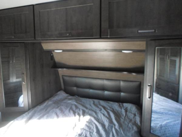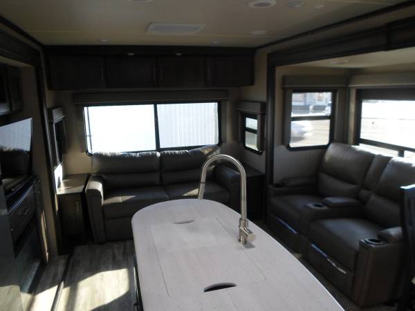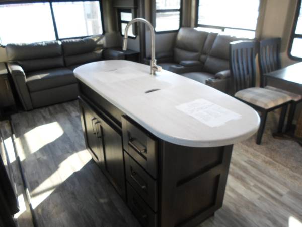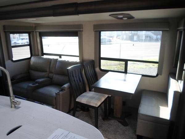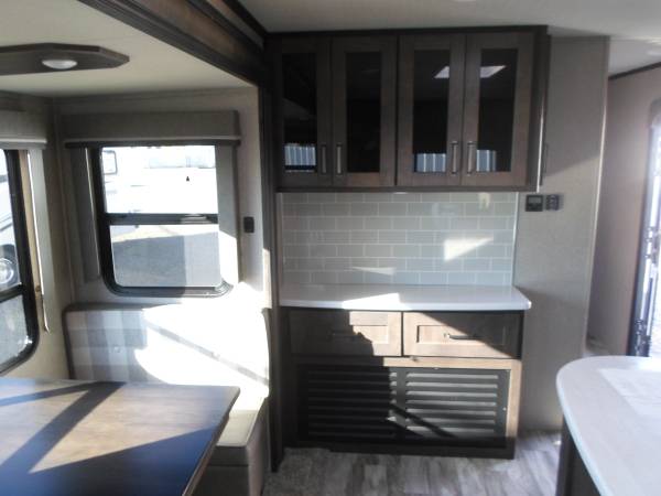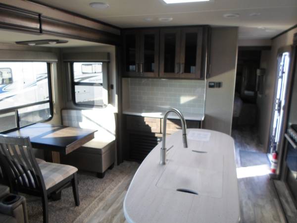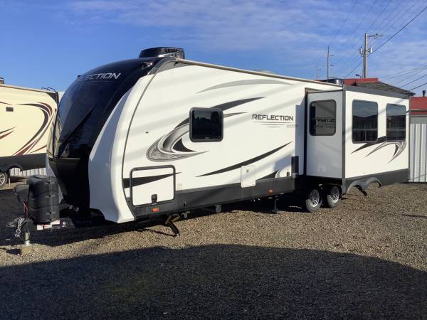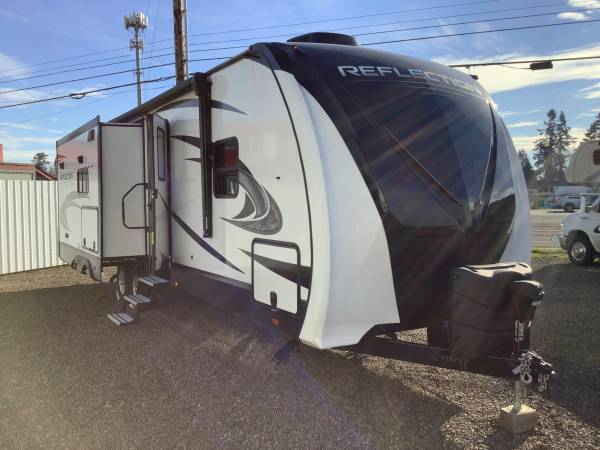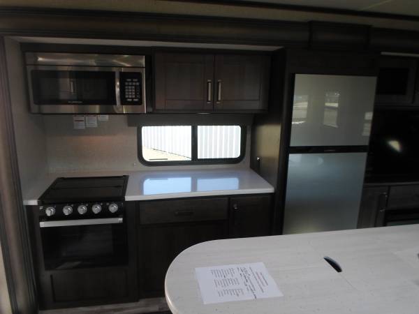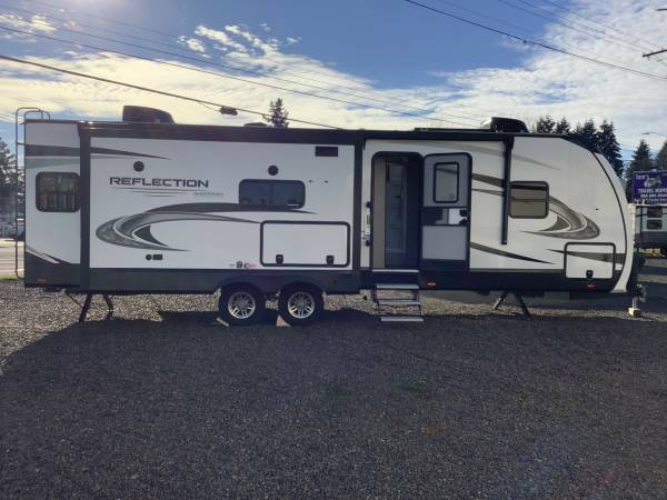 2022 Grand Design Reflection 34' Travel Trailer. Model # 297RSTS Features Tankless Water Heater, Fire Place, Electric and 12V Refrigerator, Air Conditioning, Furnace, Stove, Oven, Microwave, Electric Awning, Electric Stabilizer Jacks, Electric Hitch Jack, Outside Shower, Power Roof Vent, Outside Kitchen, Flat Screen TV, Solar Panel, CD/DVD Player and Stereo.
