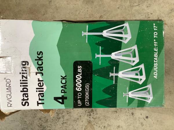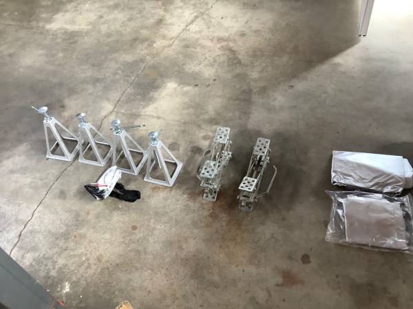 -New 37’ Travel trailer RV cover. Never been opened. -Set of 4 never been used stabilizer jacks -2 metal wheel chalks -30 amp RV extension cord $150. For all. Tom’s Travel Homes 3707 State st....