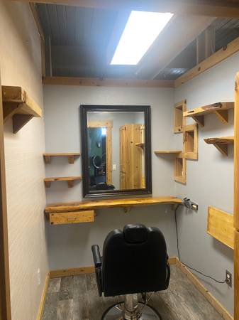 Salon Voyant has a 12 foot by 16 foot locked private room with your own shampoo bowl for lease and 2 part-time Hair station.