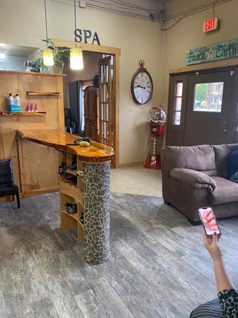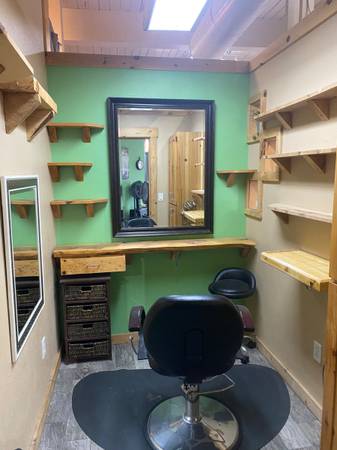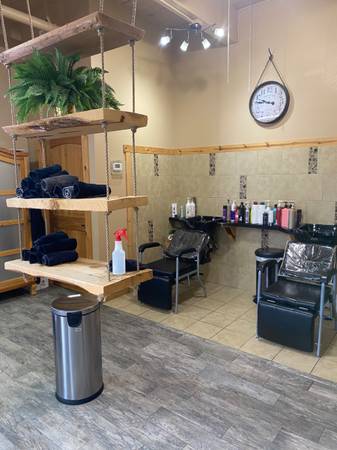 Salon Voyant has a 12 foot by 16 foot locked private room with your own shampoo bowl for lease and 2 part-time Hair station.