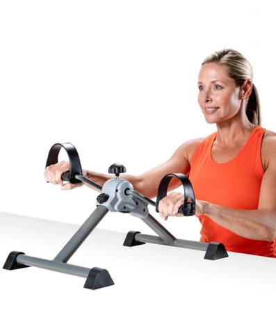 Elevate your fitness and mobility with the Stamina Folding Upper & Lower Body Cycle, a versatile mini trainer bike. This compact and quiet cycle offers a low-impact workout, allowing you to strengthen your lower body and improve knee and ankle mobility when using it with your feet, or tone your arms, shoulders, and back when placed on a table. The adjustable tension accommodates all skill levels, and the built-in LCD display tracks your workout time for added motivation. With its portable design, textured pedals, and secure straps, you can work out anywhere, and it folds for easy storage without the need for tools. Discover a convenient and effective way to enhance your fitness routine with the Stamina Folding Upper & Lower Body Cycle.