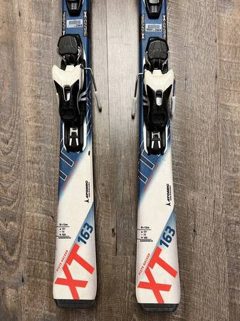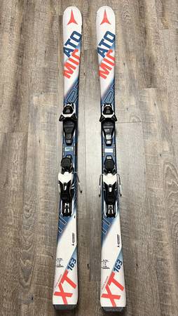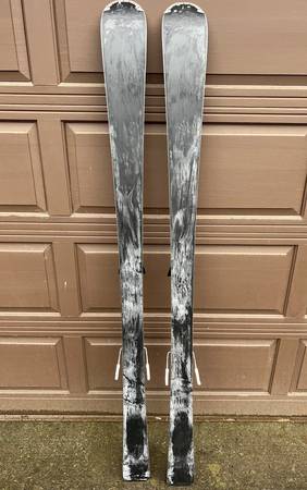 Used, but in excellent condition overall. The tops of the skis have some surface scuffs/scratches and markings from previous use. The bottom of the skis are in very good shape - there are a few shallow scratches, but no deep gashes that affect function; recently waxed and ready to ride. The skis come with Atomic bindings that are in very good functional condition, adjustable. SEE PHOTOS
