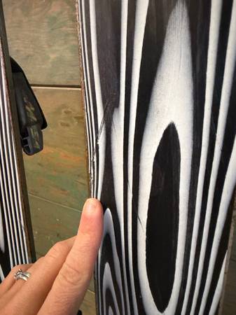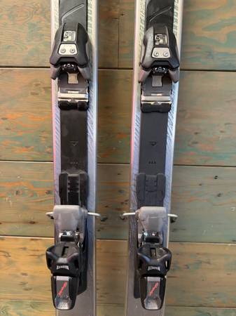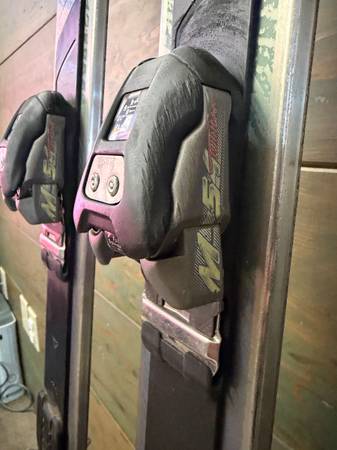 Used and in good condition overall. The tops of the skis have some surface scuffs/scratches and markings from previous use; there is no peeling or large defects in the top coat. The bottom of the skis are in good shape - some mild/moderate scratches and one deeper scratch by the edge, as pointed out in photos. The edges may have some rust spots that can easily be buffed out. The skis come with Marker bindings that are in great functional condition. SEE PHOTOS