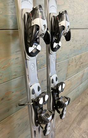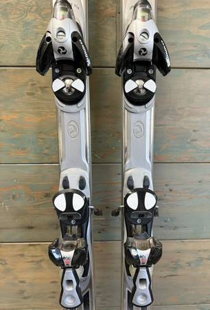 Lightly used and in excellent condition overall. The tops of the skis have some surface scuffs/scratches and markings from previous use; there is no peeling or large defects in the top coat. The bottom of the skis are in great shape - some mild/shallow scratches, but no large cuts requiring repair. The edges have some rust spots that can easily be buffed out. The skis come with Salomon bindings that are in great functional condition. SEE PHOTOS