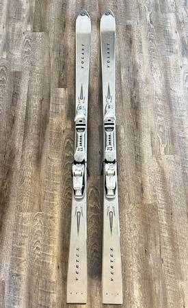 Used and in good condition overall. The tops of the skis have some surface scuffs/scratches and markings from previous use; there is no peeling or large defects in the top coat. The bottom of the skis are in good shape - some mild/moderate scratches, but no large cuts requiring repair. The edges have some rust spots that can easily be buffed out. The skis come with Marker bindings that are in great functional condition. SEE PHOTOS