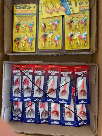 22 vintage new old stock lures: 4-Bangtails/12-w/dots/1-Dardevile/Little Ripper Z spear, Wonderlure/Thomas Rough Rider x700, and a Canadian Wonder 0 $66